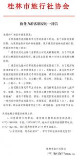 桂林市旅行社协会致各方来桂旅游游客朋友的一封信